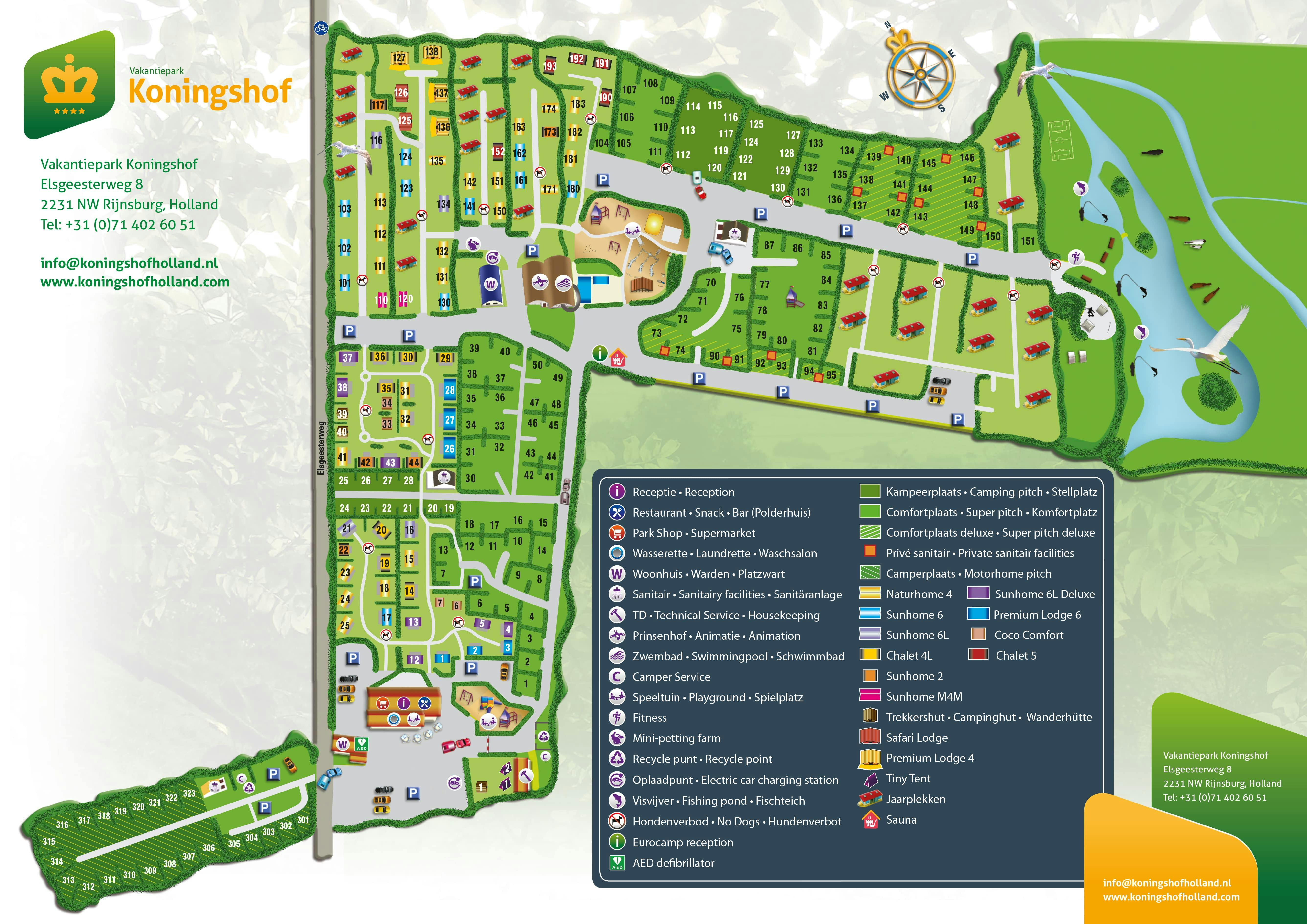 Tussen de kassen en de bloembollenvelden van Rijnsburg in Zuid-Holland vind je Vakantiepark Koningshof. Met aan de ene kant het waterrijke gebied van Warmond en aan de andere kant de duinen en de Noordzee is deze familiecamping een ideale plek voor gezinnen met kinderen en fietsliefhebbers. De 179 vlakke staanplaatsen van Vakantiepark Koningshof liggen voor een deel in groepjes op kleine, beschutte veldjes, terwijl een ander deel op wat grotere, meer open velden liggen. Er is ook een apart trekkersveld. De camping is voor een deel autovrij. Houd je van wat meer comfort? Er zijn diverse mobilhomes en trekkershutten te huur.